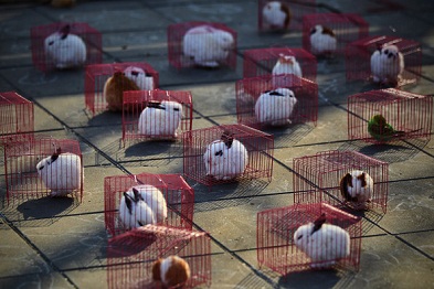 Με τα κουνελάκια ανά χείρας γυναίκες γιορτάζουν τον επικείμενο ερχομό της καλότυχης Χρονιάς του Κουνελιού, στον ζωολογικό κήπο της Μπανγκόκ.....